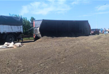 El vuelco de un acoplado cargado con cereal obligó a cortar totalmente la traza en el kilómetro 18. No hubo heridos, pero el tránsito permanece interrumpido mientras se realizan tareas de limpieza.