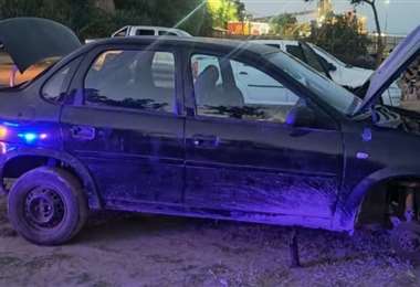 Al arribar al lugar, los efectivos constataron que se trataba de un Chevrolet Corsa Classic de color negro, al que le faltaba la patente, el estéreo, la batería y las ruedas delanteras. Además, el capó y el baúl se encontraban abiertos.