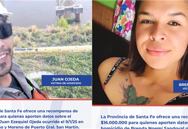El Ministerio Público de la Acusación (MPA) de Santa Fe lanzó dos pedidos de colaboración a la población para obtener información que permita esclarecer los homicidios de Brenda Sandoval, asesinada en San Lorenzo en diciembre de 2023, y de Juan Ojeda, ocurrido en Puerto General San Martín en enero de 2025. En ambos casos, se ofrece una recompensa de $16.000.000 a quienes aporten datos útiles y decisivos para identificar o localizar a los responsables.
