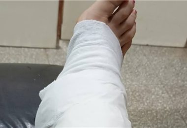 La mujer sufrió lesiones en la pierna que requirieron sutura en el Hospital Granaderos a Caballo.