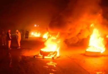 La protesta se realizó con quema de cubiertas en el límite de las localidades. Denuncian falta de acceso formal al servicio eléctrico y el deterioro de las rutas en una zona clave para el tránsito hacia los puertos.