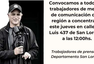 Trabajadores y compañeros de prensa del camarógrafo realizan hoy a las 12 del mediodía una movilización frente a Fiscalía de San Lorenzo, con el fin de exigir que se esclarezca el hecho.