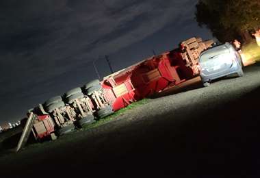 Un siniestro vial registrado sobre la Ruta A012 generó este martes complicaciones tanto en el tránsito como en el suministro eléctrico de Ricardone. Un camión que se desplazaba de oeste a este se salió de la calzada, mordió la banquina y terminó volcando a un costado del camino.