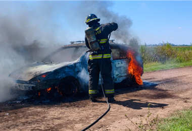 Al arribar al lugar, los efectivos encontraron el vehículo detenido sobre el camino y completamente tomado por las llamas. Sus ocupantes ya se habían alejado unos 50 metros del rodado para resguardarse de la situación.