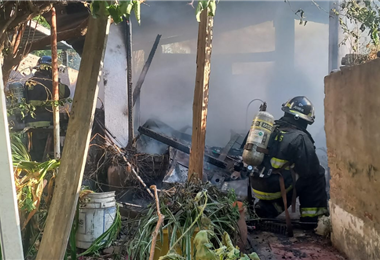 El fuego se desató en la tarde del domingo en una vivienda de calle Rivadavia al 400. No hubo heridos y las llamas no se propagaron a la casa principal.